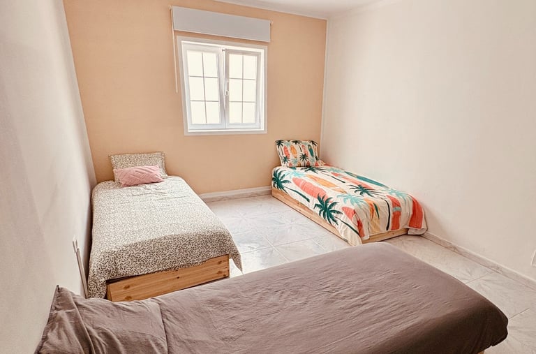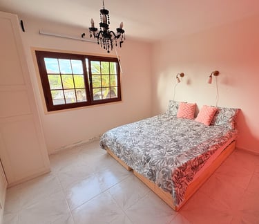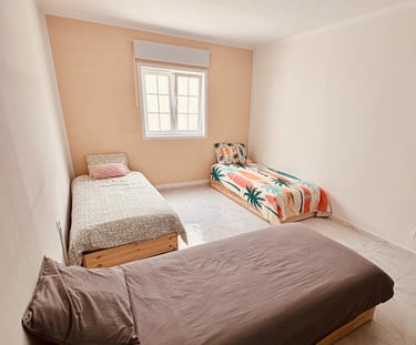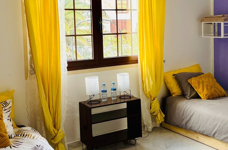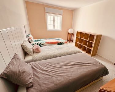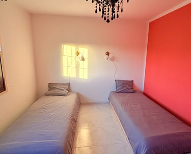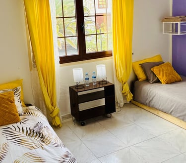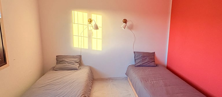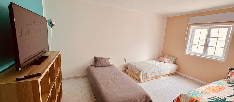 A single or twin or double or triple room with single beds and a confortable upper matress for a king sized bed. A storage shelf and a 50¨led television. Ideal for a family or a group of friends. From €35per night.