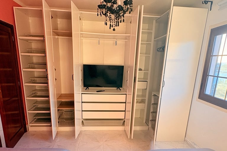 A single, twin or double room with two single beds, a confortable upper matress for a queen size bed. A very large built-in wardrobe with a led television inside. From €38 per night.